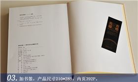 封面用彩麻色布燙黑金/燙紅金,環(huán)襯用170克米色特種紙,內(nèi)頁用157克亞粉紙雙面4色彩印,鎖線精裝。內(nèi)有拉頁,加書簽